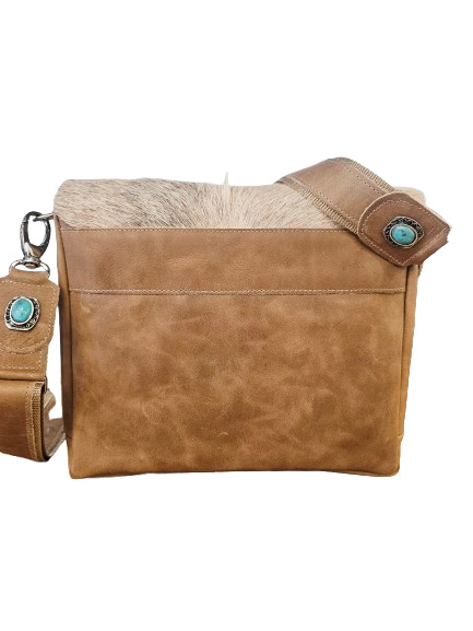Soft Amber Koeienhuid tas Ganesha met turquoise steen