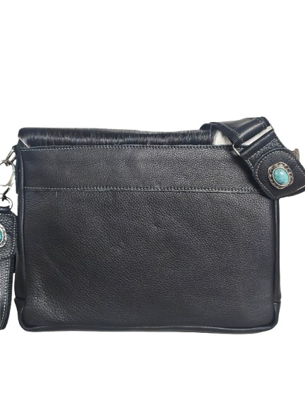 Zwart/witte Koeienhuid tas Ganesha met turquoise steen