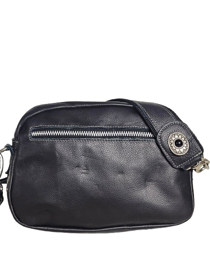 Een Fashionable tas waar je veel spullen in kwijt kan (o.a. flesje water, grote porto, telefoonhoes, sleutels). In deze stijlvolle trendy cross-over tas zit een hoofdvak deze wordt afgesloten door een metalen YKK-rits. Achter de tas zit ook een rits. De schouderriem is afneembaar en verstelbaar.