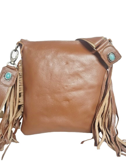 Akaora Koeienhuid Dewi met franjes en turquoise steen