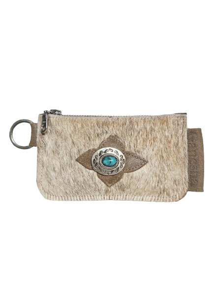 Rio portemonneetje mushroom koeienhuid met turquoise steen