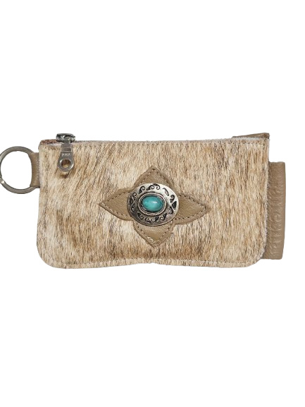Rio portemonneetje hailey koeienhuid met turquoise steen