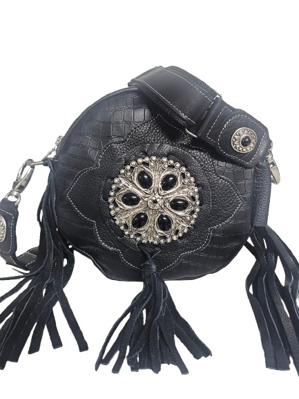 Zwart lederen Caiman tas Chakra met zwarte steenChakra! Deze leuke tas van Ganesha is de Must Have voor het aankomend seizoen. De ronde tassen zijn de laatste trend dus met deze tas wil jij zeker gezien worden. Een hip model die niet mag ontbreken in jouw tassenverzameling.…